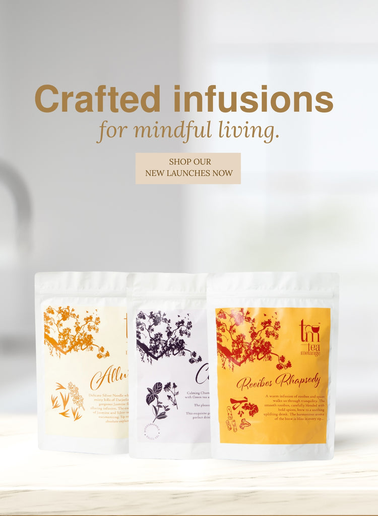 Indulge in our naturally soothing teas, brimming with antioxidants and health benefits. From aiding digestion to enhancing sleep, our blends like Dream Away, Blue Idyll, and Spicy Turmeric cater to various wellness needs. Discover relaxation and wellness in every cup from Tea Melange.